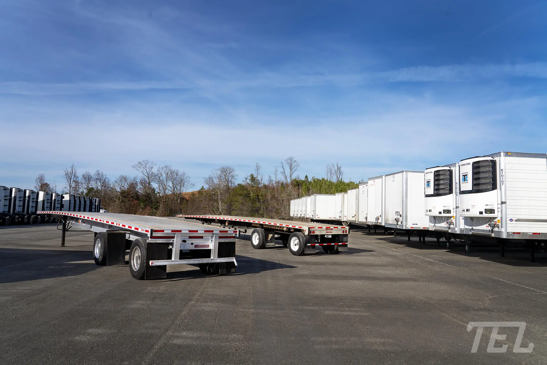 We Offer Top-Quality Commercial Semi-Trailers from leading brands. Our dry van trailers are prefect for TL/LTL over-the-road long and regional hauling of dry goods. The 53’ insulated reefer trailers are the ideal solution to cold chain continuity providing temperature controlled transport of goods across the country. Whether you are hauling raw materials for secondary manufacturing, end-use parts, or finished goods, our straight-frame flatbeds and step decks are a critical asset to help you manage your supply chain. Whatever your trailer needs are, TEL has you covered.
